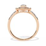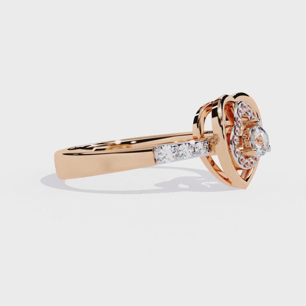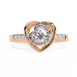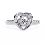 A heart-shaped centre is encircled by concentric diamond layers, giving the ring depth.