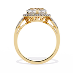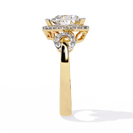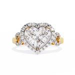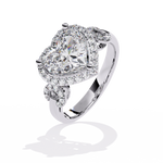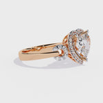 An elevated solitaire setting with intricate diamond detailing beneath the centre stone.