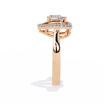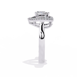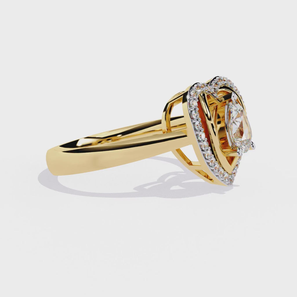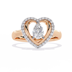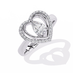 A flowing heart outline gently wraps around the centre, creating a sense of movement and warmth. Diamond detailing adds a graceful shimmer along the curves.