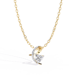 A diamond heart gently cradled by a curved band.