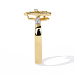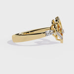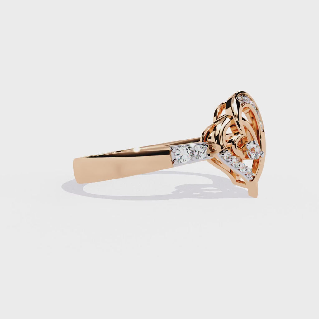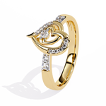 Interlocking heart forms come together in a fluid, sculptural design. Diamond accents add depth and sparkle without overpowering the look. A ring that symbolises connection, closeness, and shared moments.
