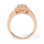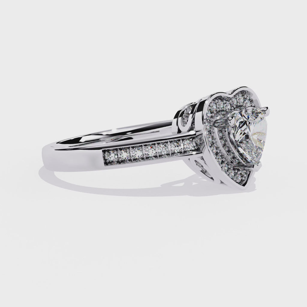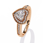 A warm rose-toned heart frame surrounds the centre diamond.