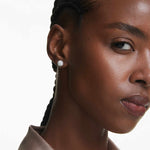 Blending playful geometry with shimmering light, these Dextera studs were made for joyful styling. Each sphere is rhodium plated and amplified with offset pavé and mixed sizes of crystals. Wear them together for symmetrical sophistication or mix and match with the star-shaped studs from the same multifaceted family.