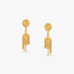 Drape yourself in timeless beauty with 18 Karat yellow gold Jhumka Earrings featuring floral tops and flowing tassels for a graceful festive statement.